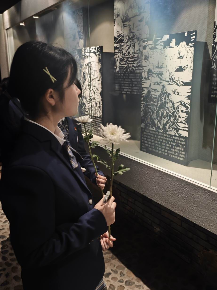 英烈墙上,1619个名字如星辰列阵,每个姓氏都承载着一段壮烈往事。师生代表手持白菊沿墙缓行,指尖抚过冰凉的镌刻铭文,将鲜花轻置于碑前。