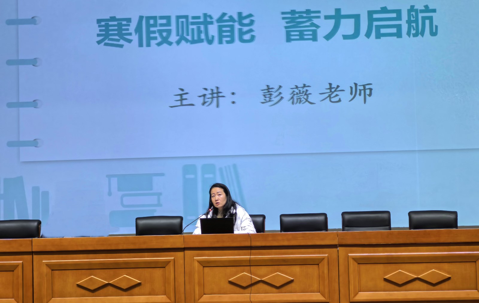 高二年级组长彭薇老师以“寒假赋能,蓄力启航”为题对学生进行寒假生活指导。她向同学们展示了各学科任课老师对同学们一学期表现的总结以及有关寒假生活的“锦囊”,建议同学们在寒假期间做到三点:一是端正态度,坚定信念,科学规划;二是对症下药,自主学习,高效蓄力;三是劳逸结合,张弛有度,平稳过渡。高二2班王郅钧同学作为学生代表发言,他谈了自己对寒假生活的设想,分享了自己的寒假规划,对同学们具有很好的借鉴意义。党总支副书记文朝有希望同学们在规划寒假生活时要处理好四对关系:①终点与起点,寒假既是前阶段的终点,也是下阶段的起点。②发散与聚合,寒假生活既要全过程的多元体验,也要有分阶段的任务聚焦。③共性与个性,寒假规划要借鉴他人的经验做法,更要基于个人的实际情况;④绝对与相对,寒假的时间是固定的,但每个人对待寒假的态度将会决定这段时间的厚度。