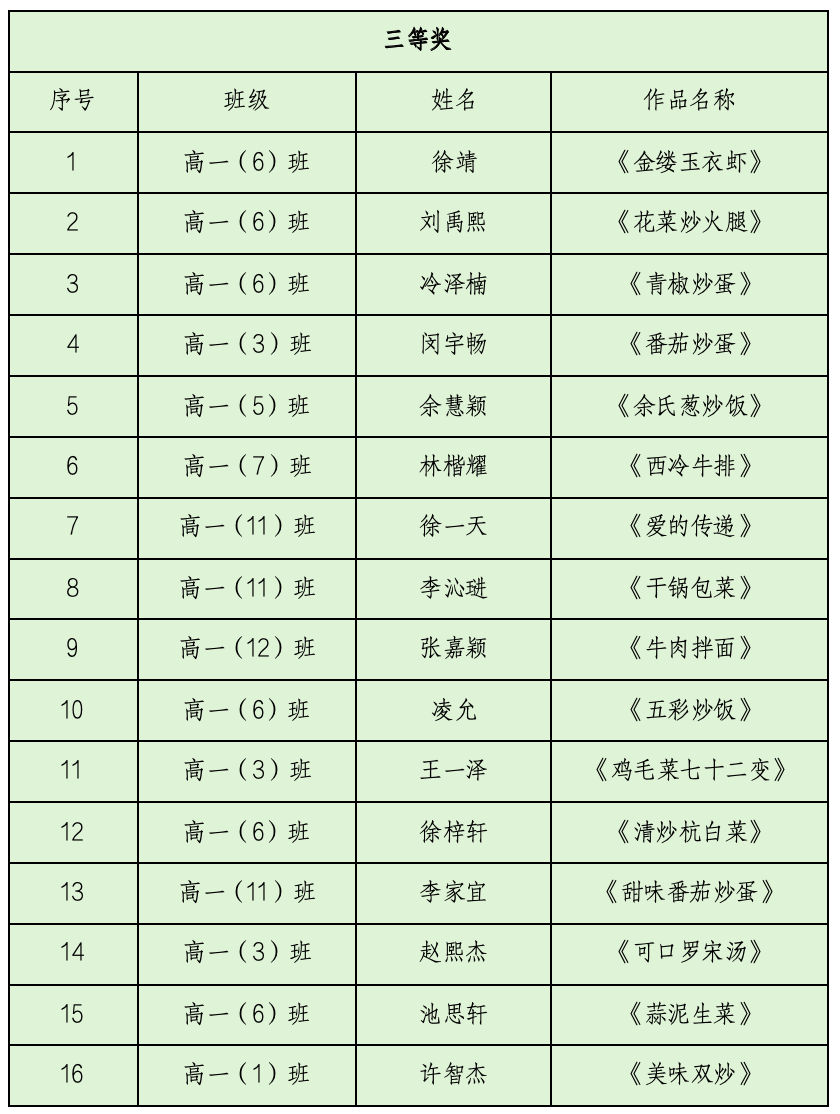 “以菜表爱”,将烹饪的成果--菜肴,作为传递感情,表达感恩的载体,赋予了劳动教育更深层次的情感价值和人文内涵,让劳动变得有温度、有故事,也让学校推动五育融合的教育实践变得具体,可感、可亲。同学们在锅碗瓢盆的协奏中,体会了付出的辛苦,也收获了成长的喜悦。感谢每一位同学的用心参与,你们亲手烹制的不只是一道菜肴,更是对家庭责任的一份理解,对父母恩情的一份回报。让教育回归生活,劳动创造幸福,实践促进成长,期待同学们在今后的生活中,继续用行动书写最美的青春篇章!