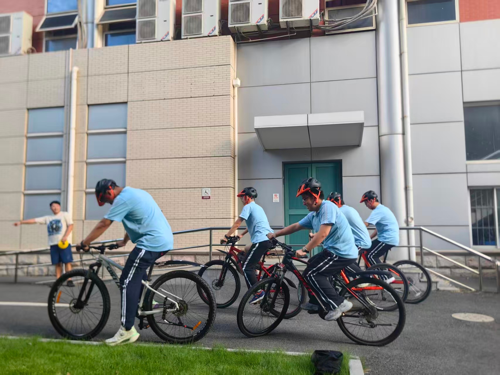 理论学习结束后,活动转入室外场地。在提前规划的专属路线上,同学们在教练带领下检查装备、佩戴头盔等程序后,亲身实践基础骑行动作,还参与了趣味竞赛,慢骑、竞速等,在一次次练习中掌握要领,将运动乐趣与知识融合,感受骑行运动的魅力。